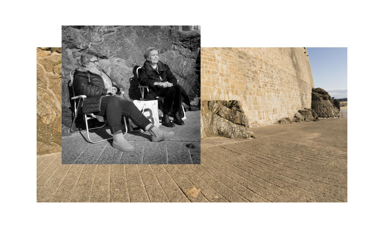 Avec la bascule de Guillaume vers l'argentique et le portrait, ce premier projet est donc abandonné au profit d'un projet plus humaniste. L'envie de mer reste, le cadre de la côté malouine est conservé, mais les 2 compères décident de faire se rencontrer leurs pratiques photographiques à priori opposées : numérique et argentique, ultra grand angle et longue focale, couleur et noir & blanc, paysage et portrait.
