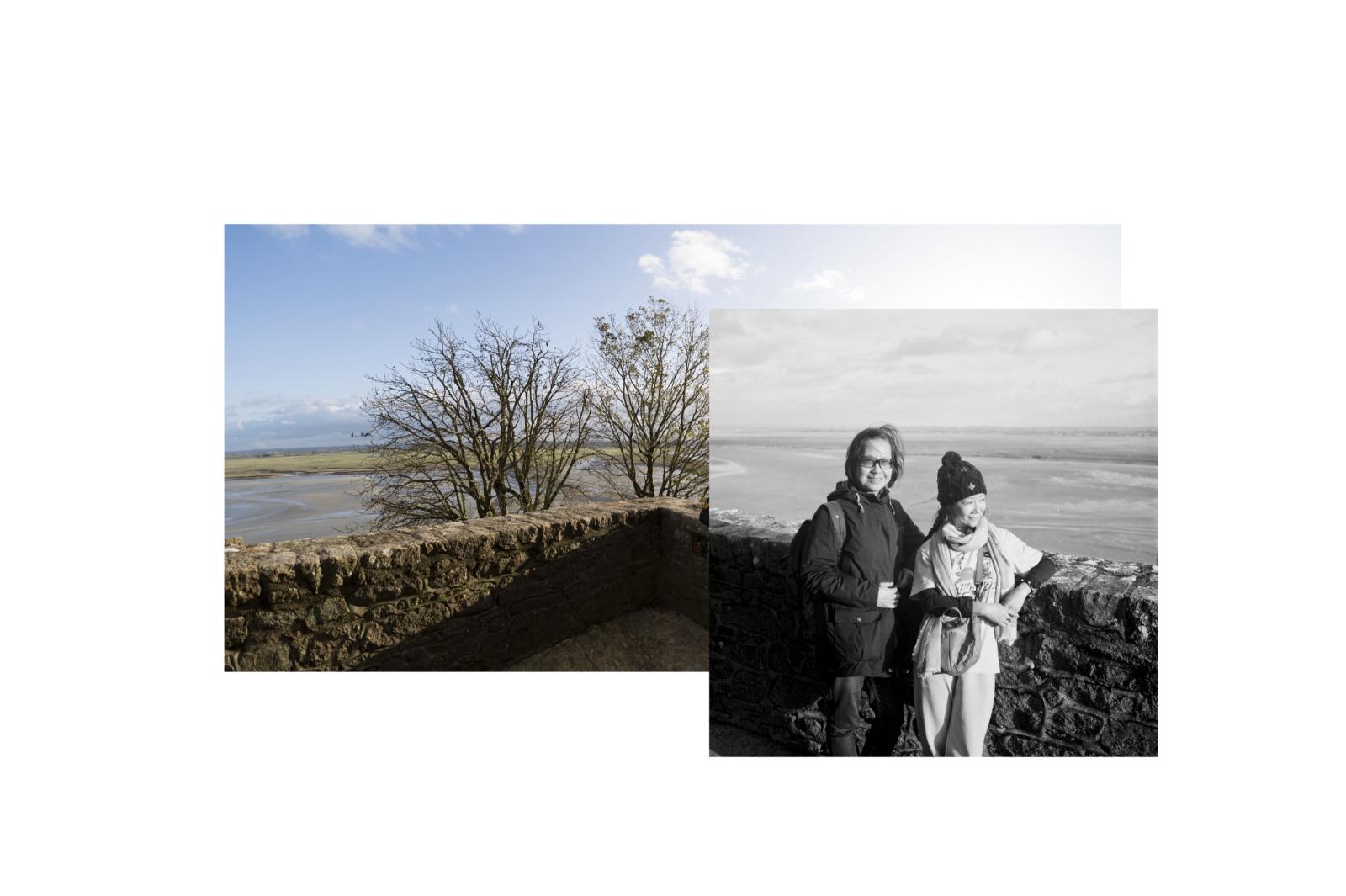 Danyang Liu est originaire de Beijing et habite à Barcelone ; Leeshing, elle, habite Melbourne et est originaire de Shanghai. Elles se sont rencontrées lors d’une croisière en Méditerranée il y a 7 ans. Elles se retrouvent au mont St-Michel, profitant d'un voyage de Leeshing en Europe.